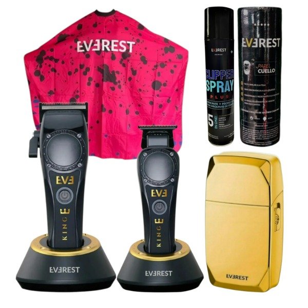 COMBO EVEREST KING CLIPPER + TRIMMER + SHAVER DORADA + 5 EN 1 + CUELLO + CAPA