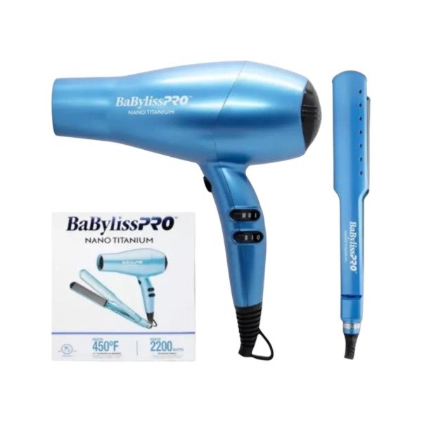 SET BABYLISS PRO NANO TITANIUM SECADOR + PLANCHITA ALISADORA HUMEDO Y SECO
