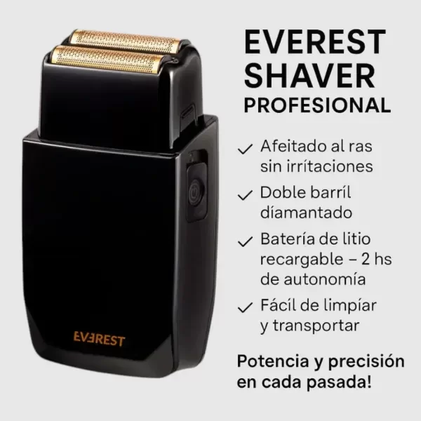 EVEREST AFEITADORA SHAVER BLACK NEGRA PROFESIONAL BARBERIA - Motor 9000 RPM - Batería de litio - Gold titanium blades - 2 horas de carga - Interruptor de encendido y apagado. - Autonomia 2 hs