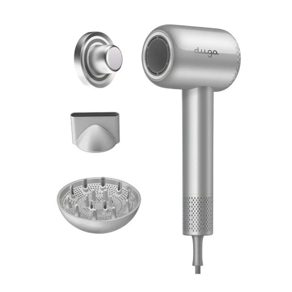 Duga Secador De Cabello Magni Grey 1900W Con Difusor El secador Magni Grey Hold Dry de Duga combina tecnología avanzada y un diseño innovador para ofrecer un secado rápido, eficiente y seguro. Equipado con un motor BLDC de alta velocidad que alcanza 110.000 RPM y tecnología termostática inteligente, garantiza un flujo de aire estable y un calor constante para proteger el cabello en cada uso. Su estructura optimiza la entrada y salida del aire, mejorando la circulación interna y aumentando la potencia sin aumentar el ruido. Además, cuenta con tres velocidades, tres niveles de temperatura y un botón de aire frío para fijar el peinado. Ideal para uso profesional o doméstico, con un diseño moderno y accesorios magnéticos que facilitan cada paso del peinado. Características principales - Motor BLDC de alta velocidad (110.000 RPM) - Tecnología de calor constante con control termostático - Entrada de aire en el mango y salida optimizada para mayor flujo - Reducción de ruido integrada - 3 velocidades y 3 temperaturas - Botón de aire frío - Potencia: 1700–1900 W - Cable reforzado de 2,5 m Incluye - Soporte magnético de pared - Difusor magnético - Pico concentrador magnético Beneficios - Secado rápido y uniforme - Mayor precisión y control en el peinado - Diseño moderno, compacto y liviano - Accesorios magnéticos fáciles de colocar - Ideal para profesionales y usuarios exigentes