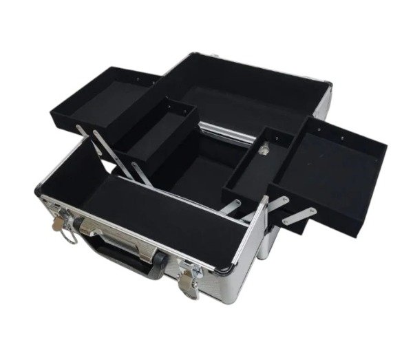 Maletín de aluminio con dos herrajes con llave para mayor seguridad.
