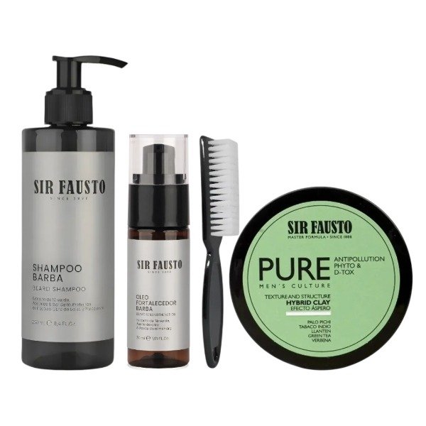Sir Fausto Kit Barba Shampoo + Oleo + Cepillo + Hybrid Clay