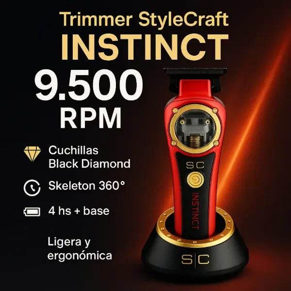 StyleCraft Instinct Clipper está diseñada para un rendimiento de nivel barbero. Su motor vectorial de alta respuesta y el control de par inteligente mantienen la potencia incluso en cabellos densos, logrando cortes limpios y precisos en menos pasadas.