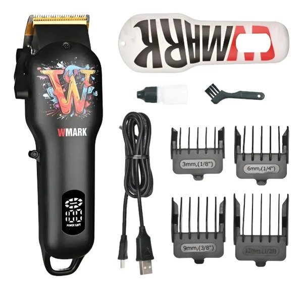 • Accesorios: 3 peines guía (1/3/6mm), una hoja de repuesto adicional, cepillo de limpieza y cable de carga USB.