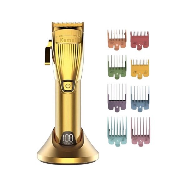 -Incluye 8 peines de alzas de colores, cable usb, base cargadora, aceite lubricante, cepillo de limpieza y peine de corte
