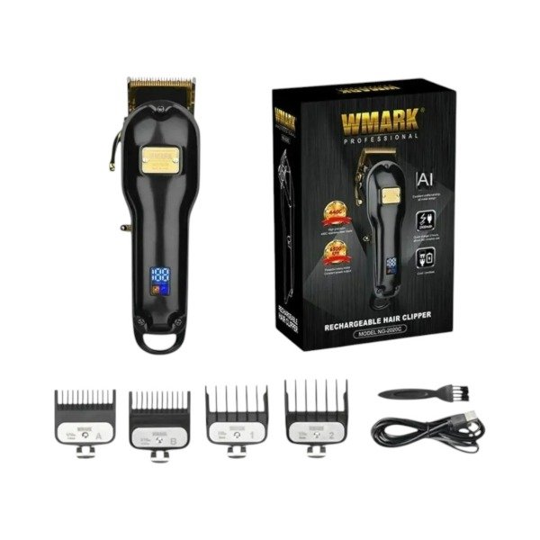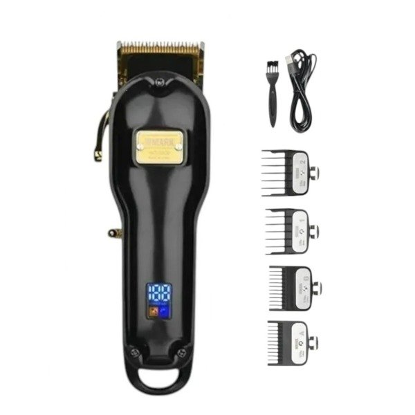 Accesorios: 4 peines divisores de metal negro (1,5 mm, 3,0 mm, 4,5 mm, 6,0 mm), cepillo*1, cable de carga micro USB*1