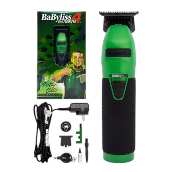 Babyliss Pro 4 Barbers Patty Cuts es un novedoso y elegante trimmer profesional de carcaza metálica con batería de iones de litio ideal para realizar diferentes contornos en el cabello y barba, posee una cuchilla en forma "T", ajustable a cero, expuesta con una visión 360º, un motor sin carbones de alto rendimiento diseñado por Ferrari, doble voltaje y una autonomía de 3 horas.
