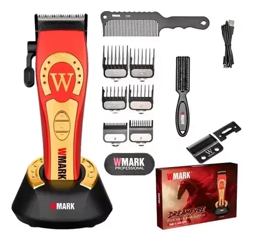 * Accesorios: 6 peines guía (1.5/3/4.5/6/9/12 mm), cepillo de limpieza, cepillo para el cabello, peine, aceite lubricante, pegatinas para el cabello, base de carga y cable USB.
